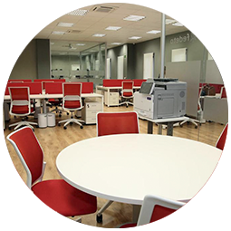 • Servicios: En este coworking tendrás a tu disposición dos salas de reuniones, una sala multiusos con proyector, una sala de ocio y relax, cocina office, una extensa biblioteca temática, sillones ergonómicos, internet 1GB. centro multifunción en A3, posibilidad de red privada…